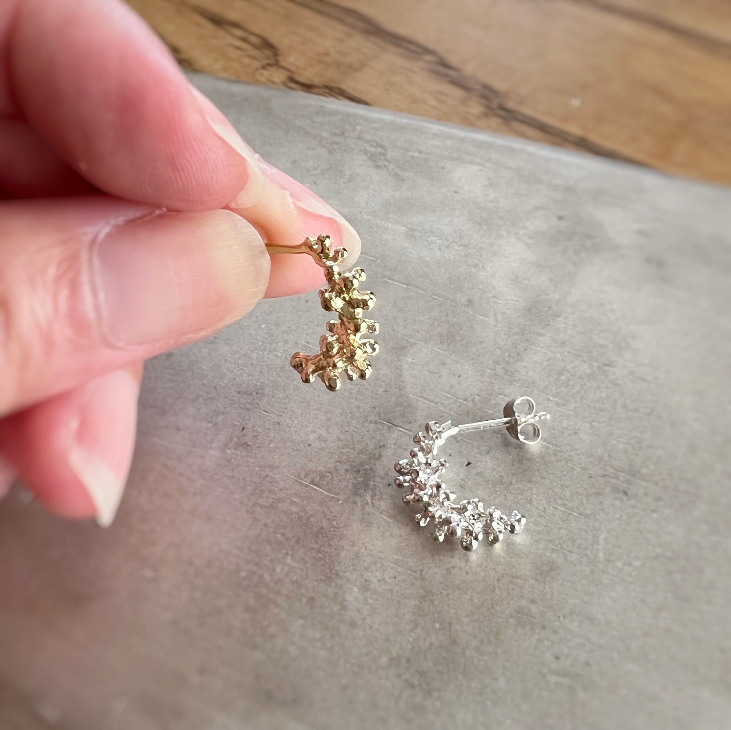金で表面がコーティングされているので真鍮やSILVER925に比べ変色はしにくいです。お手入れは台所の中性洗剤で優しく洗っていただき水気をしっかり取って下さい。
