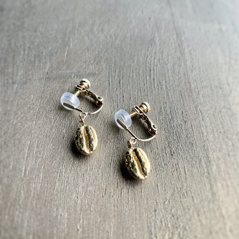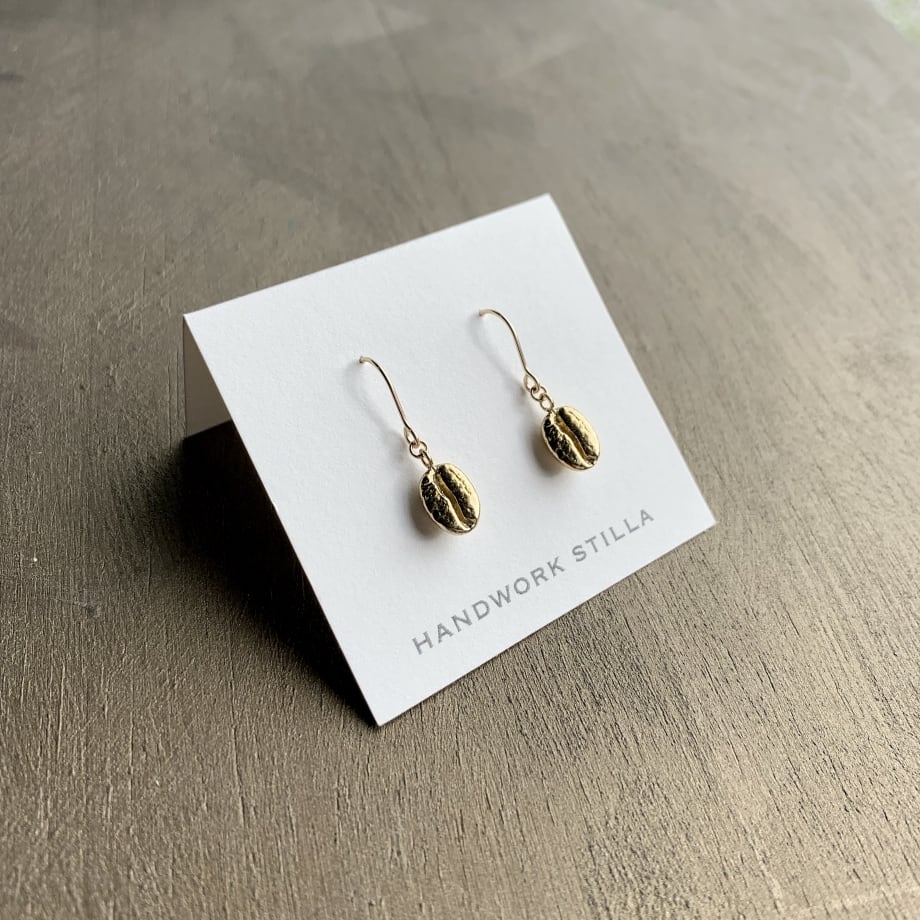 12/27までの期間限定販売(年内28-29日発送)コーヒー豆フックピアス/イヤリング K14コーティング