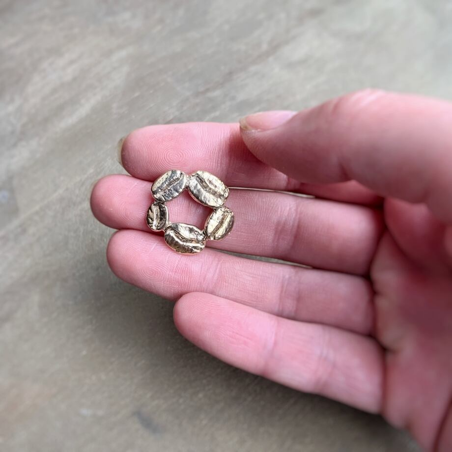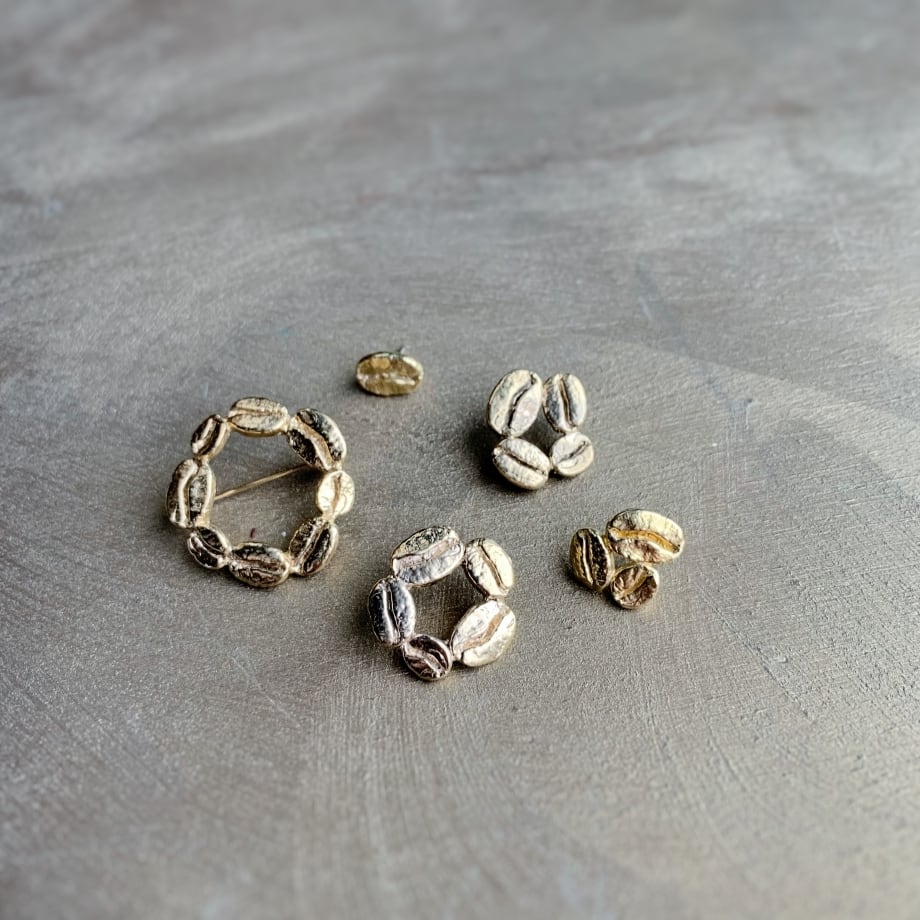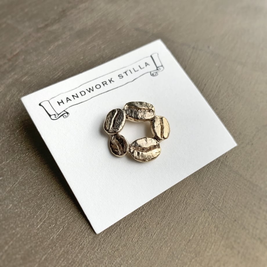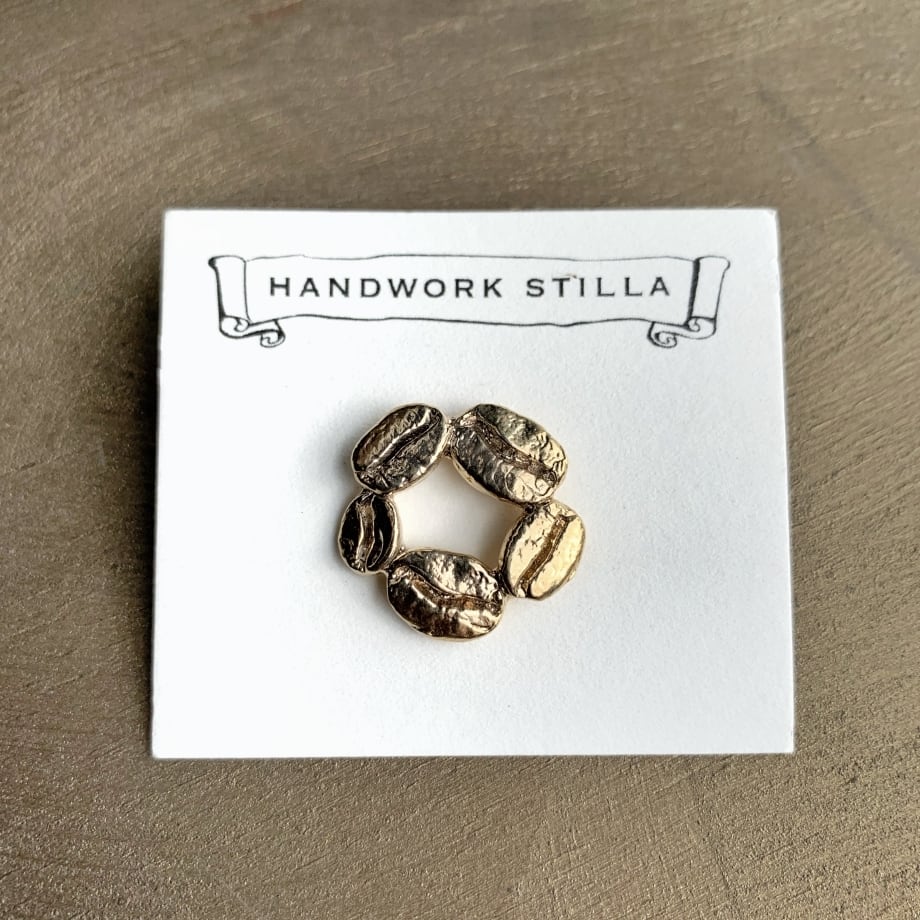 12/27までの期間限定販売(年内28-29日発送)コーヒー豆いつつピンブローチ K14コーティング ※受注製作ご入金確認後20~30日で発送