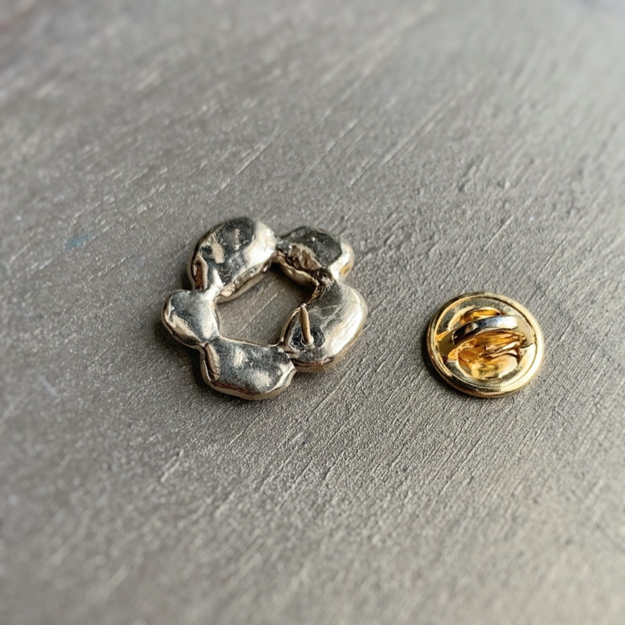小さいので、シャツやジャケットの襟などにつけると程よい存在感になります。